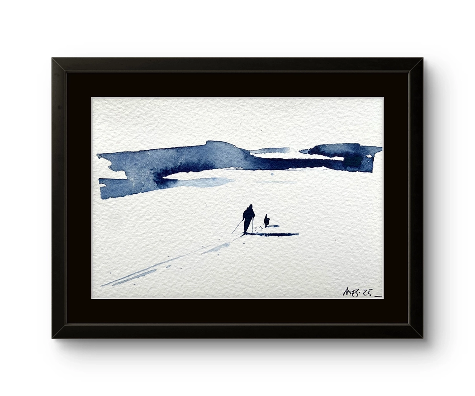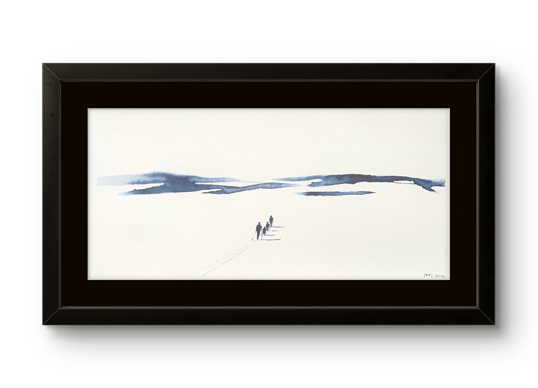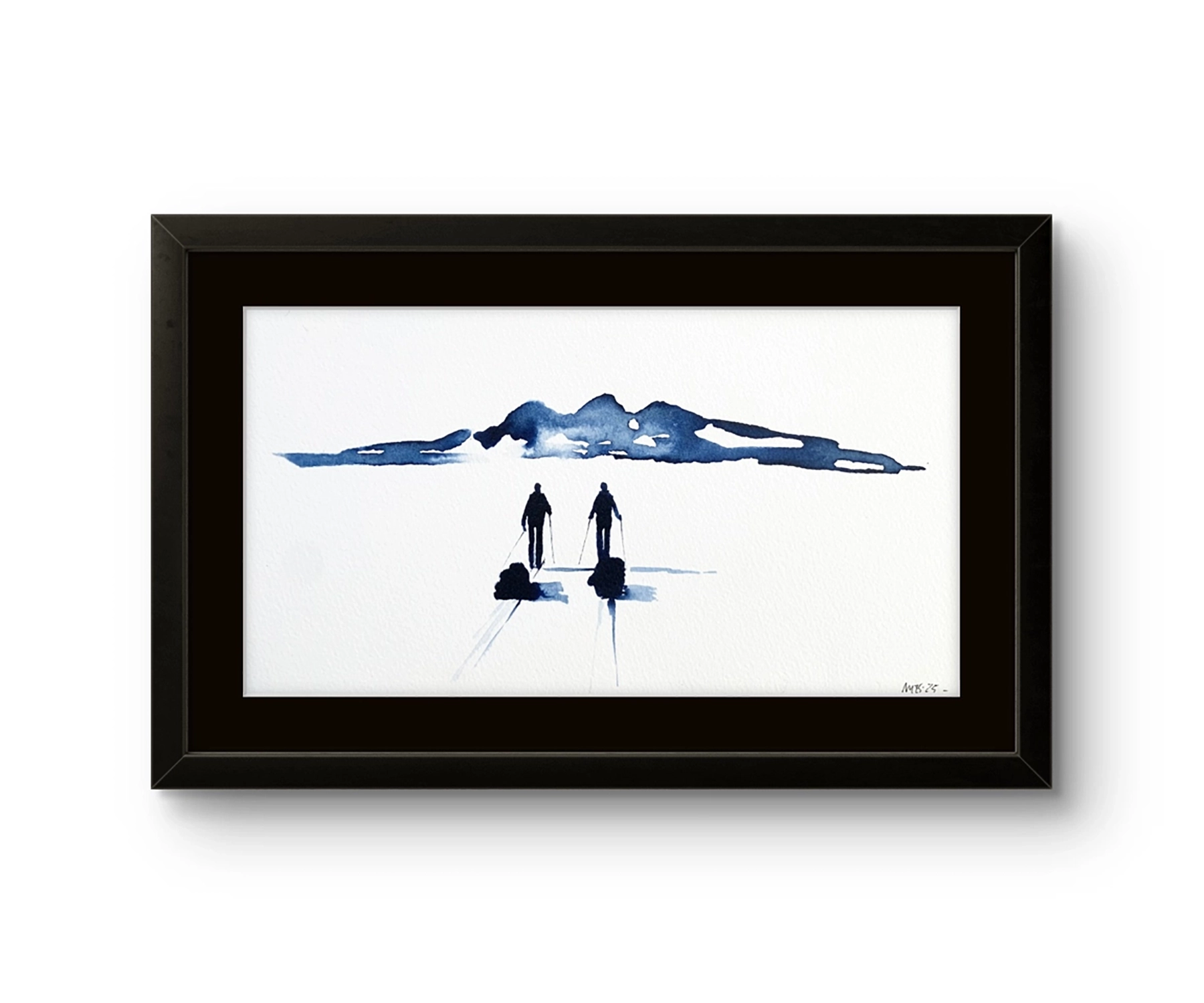 Mona Eckhoff Sørmo arbeider på tvers av flere uttrykk – maleri, tegning, foto, installasjon og illustrasjon – og hennes kunstneriske praksis undersøker menneskets eksistens i møte med naturens større sammenhenger. I serien Underveis utforsker hun mennesket i møte med det uendelige og uberørte. Den vandrende figuren i landskapet blir en metafor for livets reise: vi beveger oss alene eller sammen, lett eller med tung bagasje, alltid mot en horisont som både lokker og forblir utenfor rekkevidde.