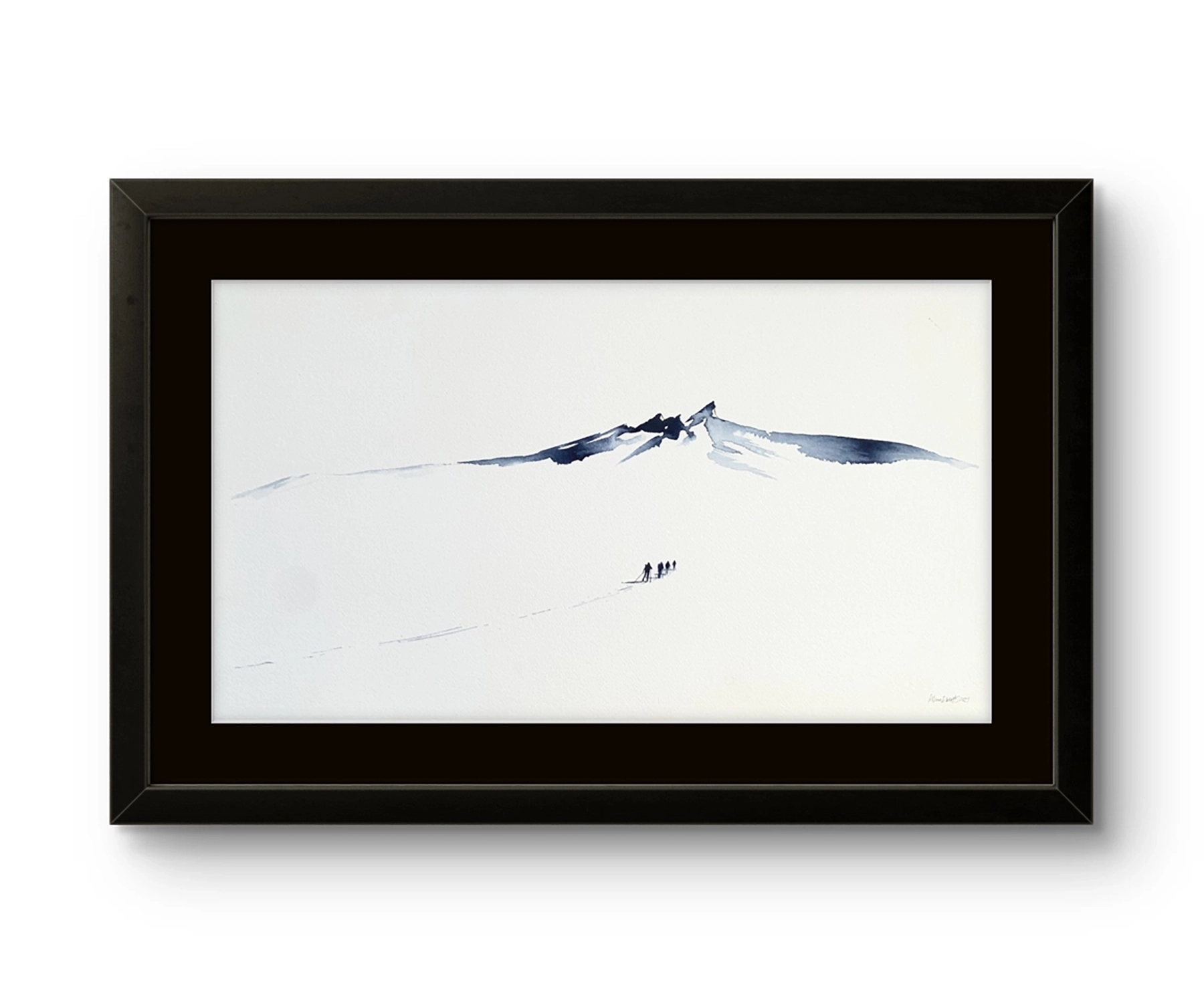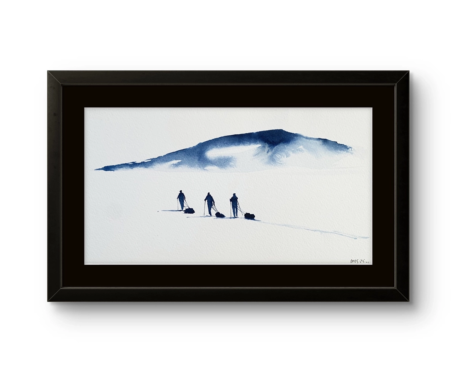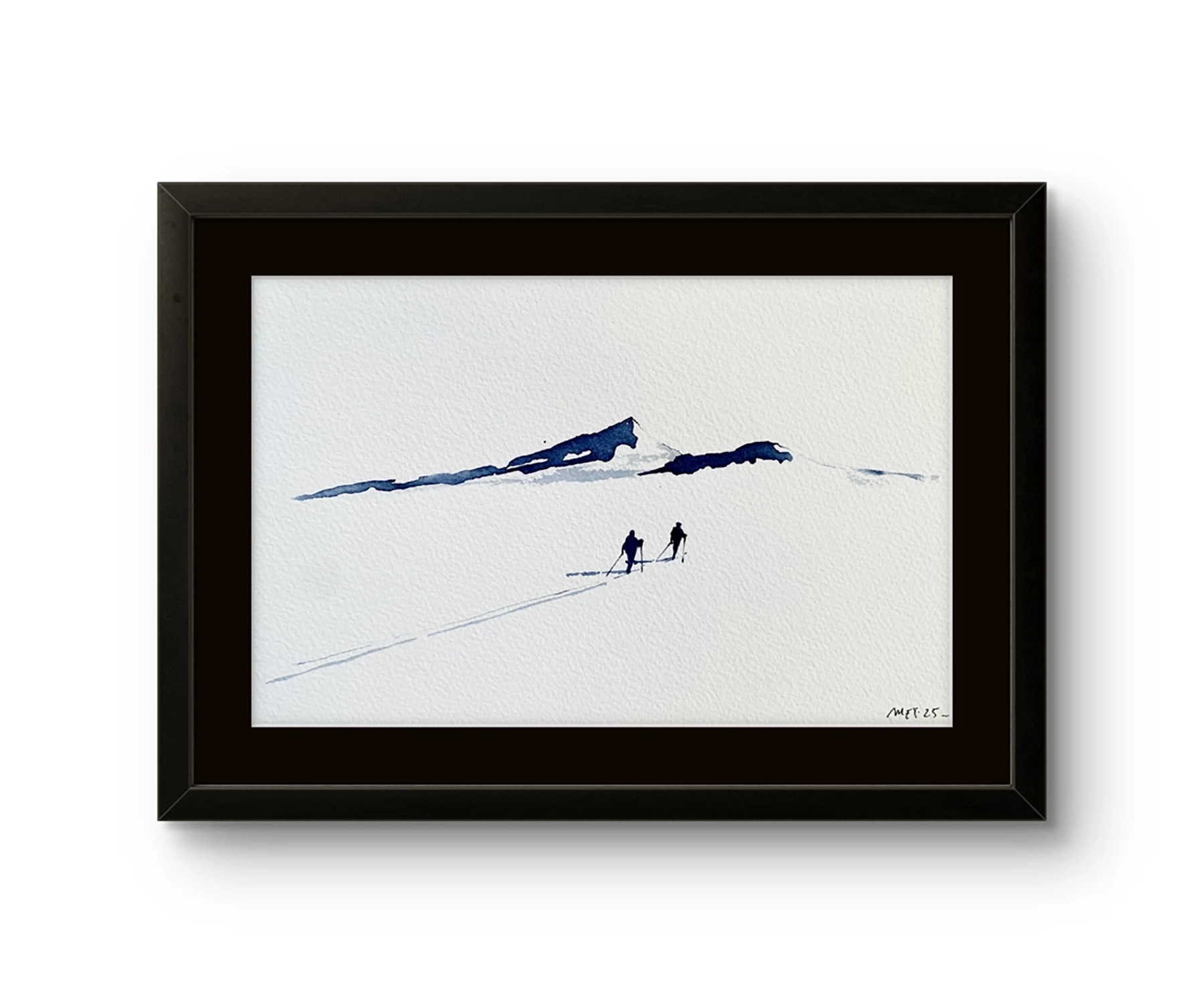 Mona Eckhoff Sørmo arbeider på tvers av flere uttrykk – maleri, tegning, foto, installasjon og illustrasjon – og hennes kunstneriske praksis undersøker menneskets eksistens i møte med naturens større sammenhenger. I serien Underveis utforsker hun mennesket i møte med det uendelige og uberørte. Den vandrende figuren i landskapet blir en metafor for livets reise: vi beveger oss alene eller sammen, lett eller med tung bagasje, alltid mot en horisont som både lokker og forblir utenfor rekkevidde.